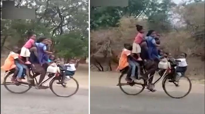 ایک شخص کی 9 بچوں کے ساتھ سائیکل چلانے کی ویڈیو وائرل