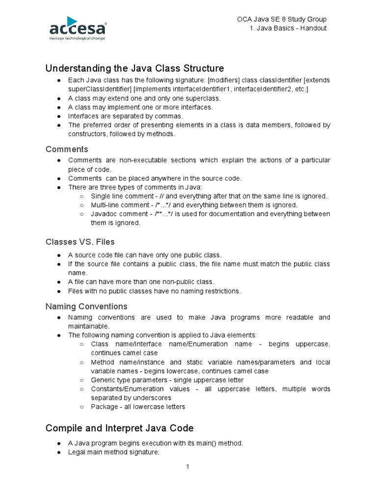 Understanding The Java Class Structure: Comments | PDF | Java ...