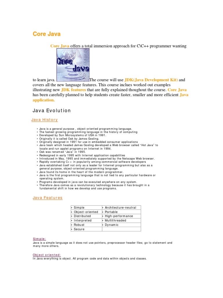 Core Java Course Introduction and Outline | Core Java | Core Java ...