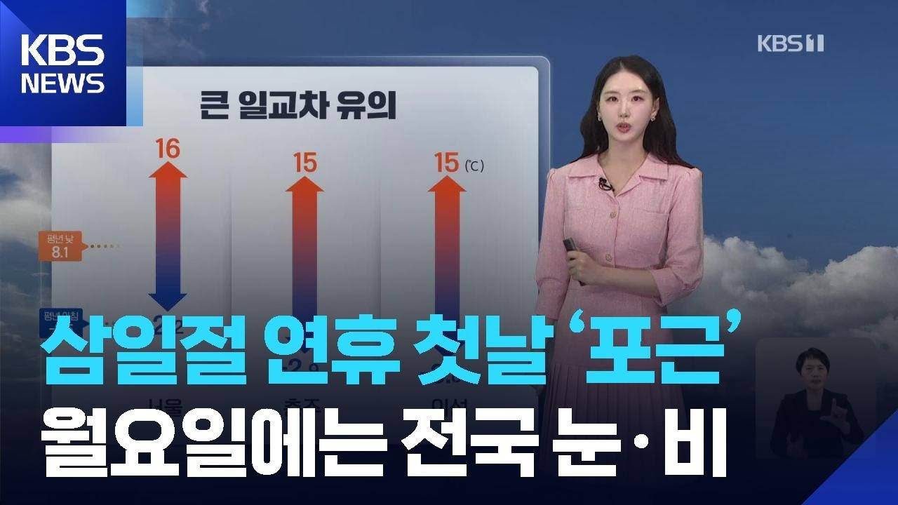 [날씨] 삼일절 연휴 첫날 '포근'…월요일에는 전국 눈·비 / KBS 2026.02.28.