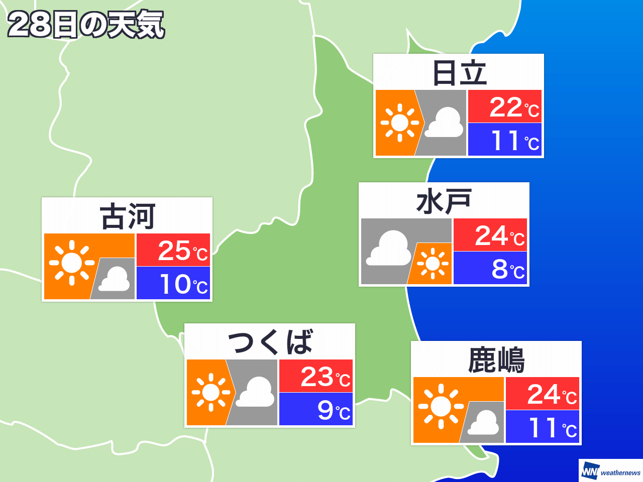 4月28日(火) 茨城県の明日の天気