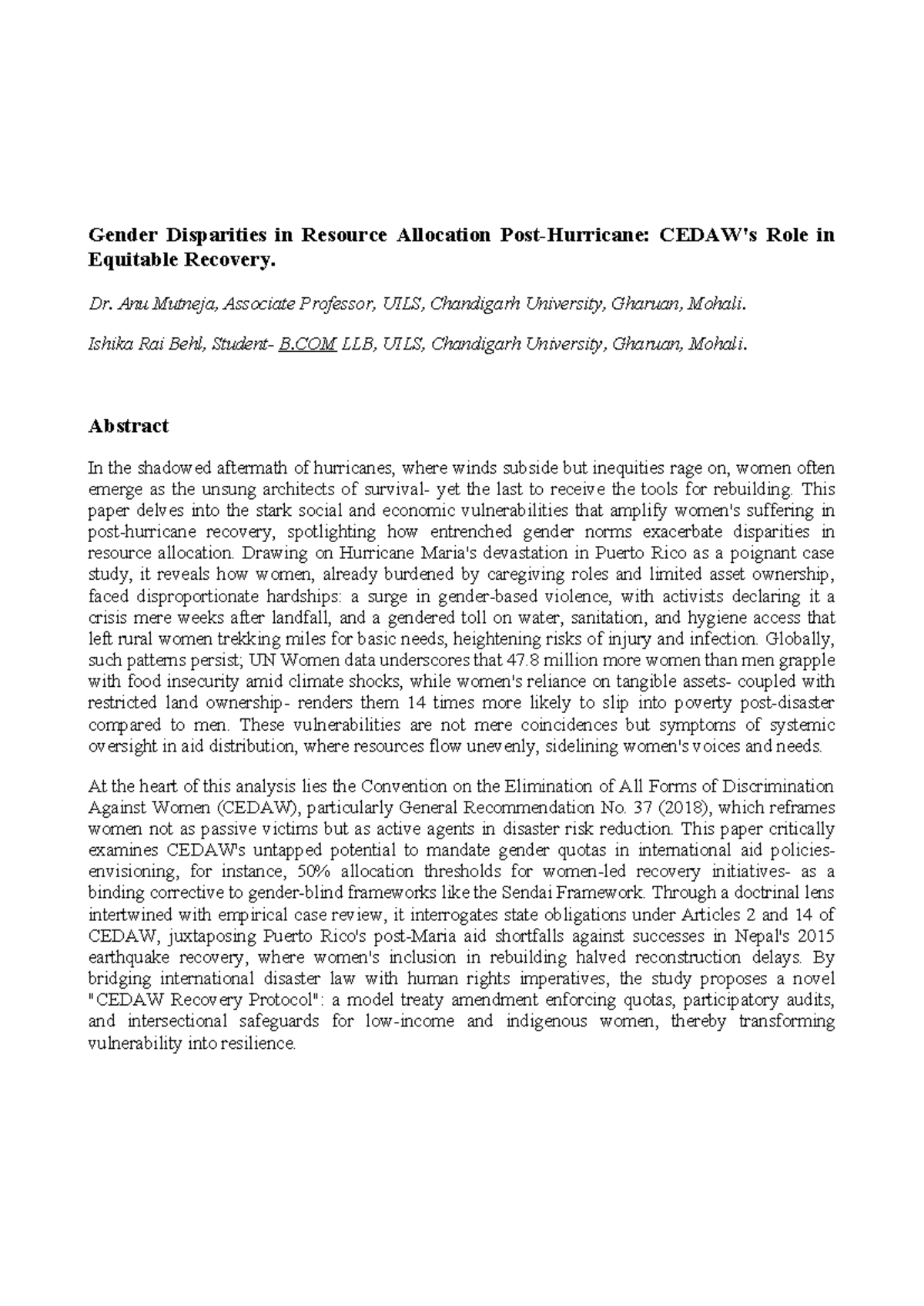 Gender Disparities in Resource Allocation Post-Hurricane: A CEDAW ...