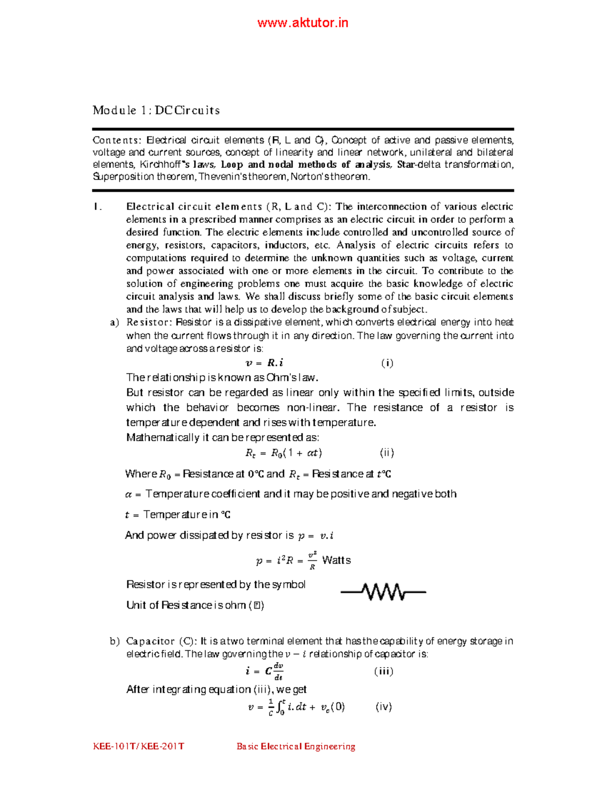 Module 1: DC Circuits - Basic Electrical Engineering Notes (15) - Studocu