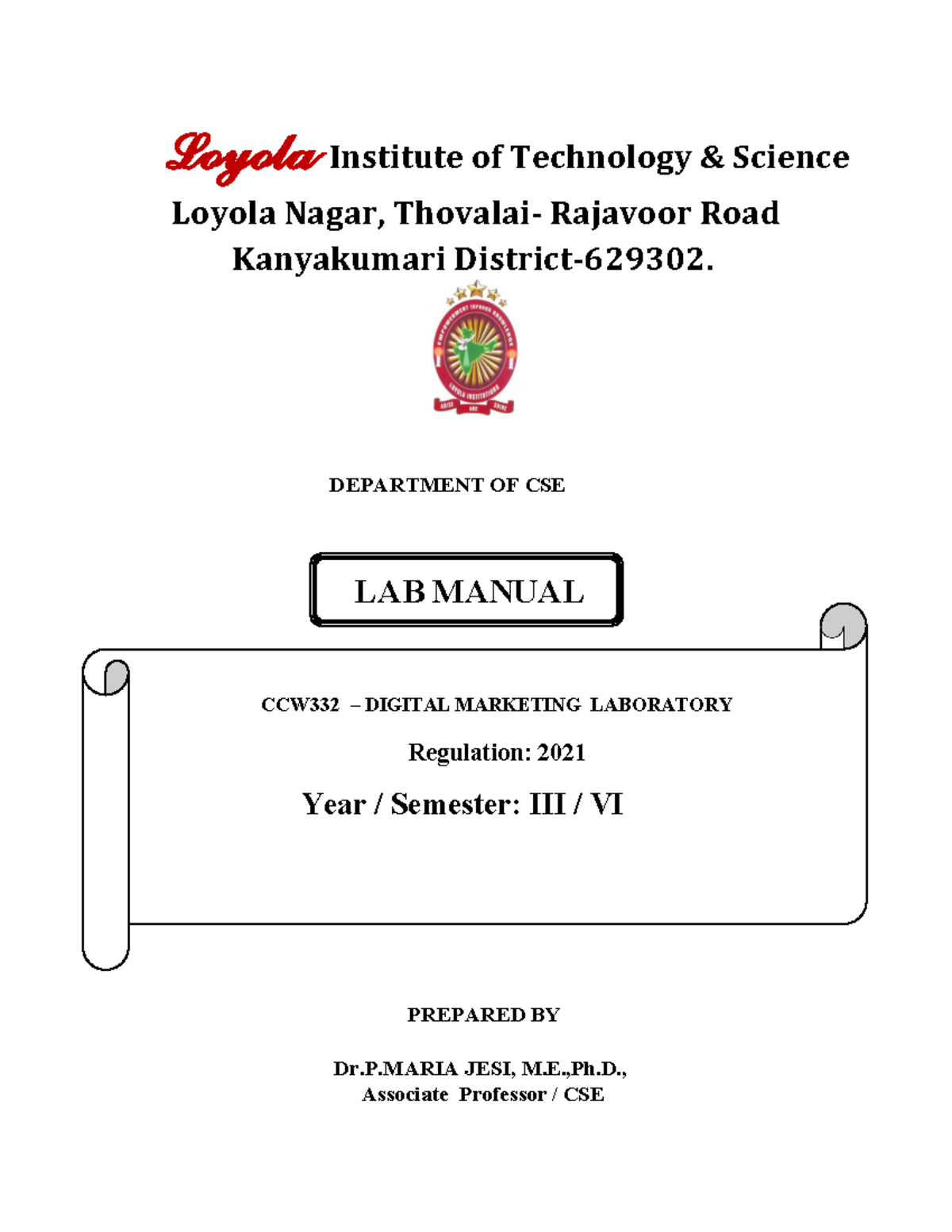 CSE CCW332 Digital Marketing Laboratory Lab Manual Notes - Studocu