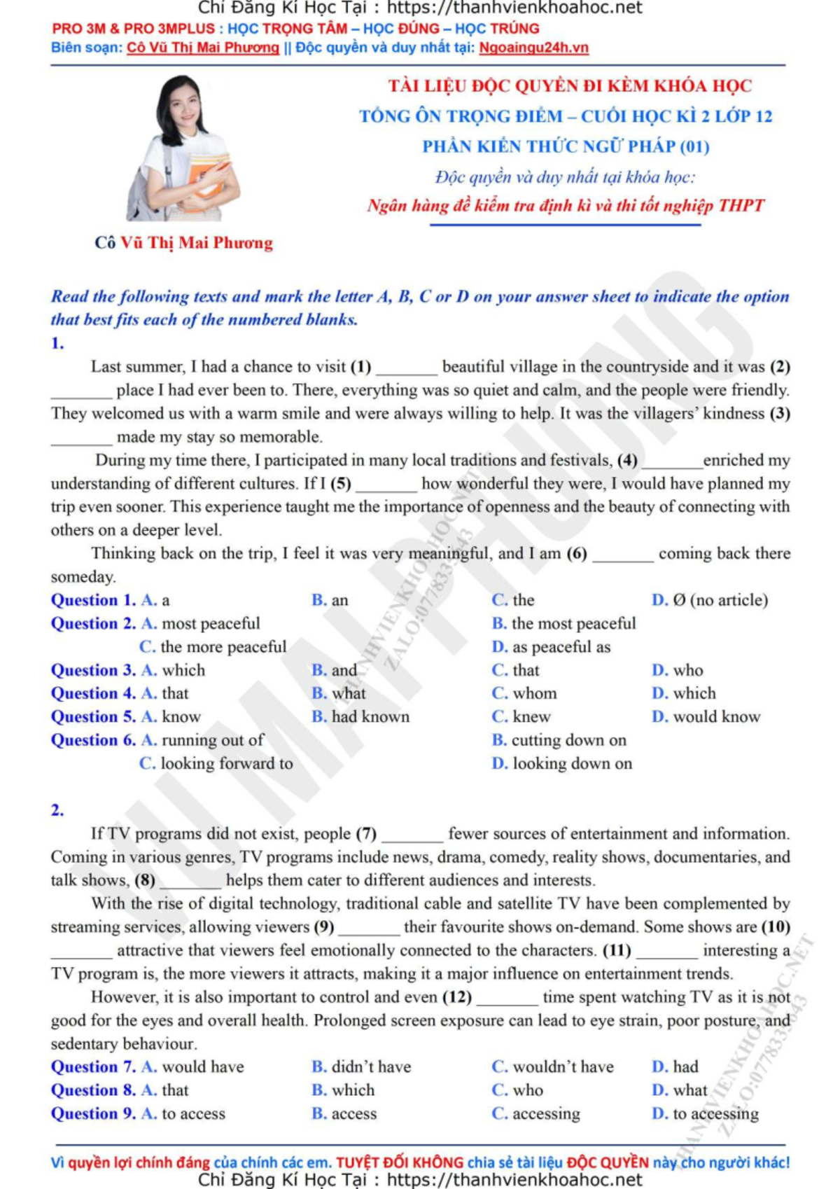 Tổng Ôn Ngữ Pháp Cuối Kỳ 2 Lớp 12 (Đề Số 1) - Studocu