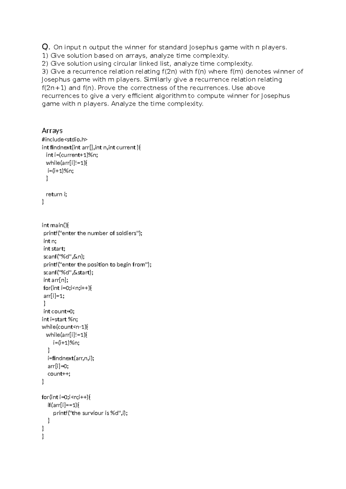 Josephus Game Analysis: Solutions with Arrays & Circular Linked List ...