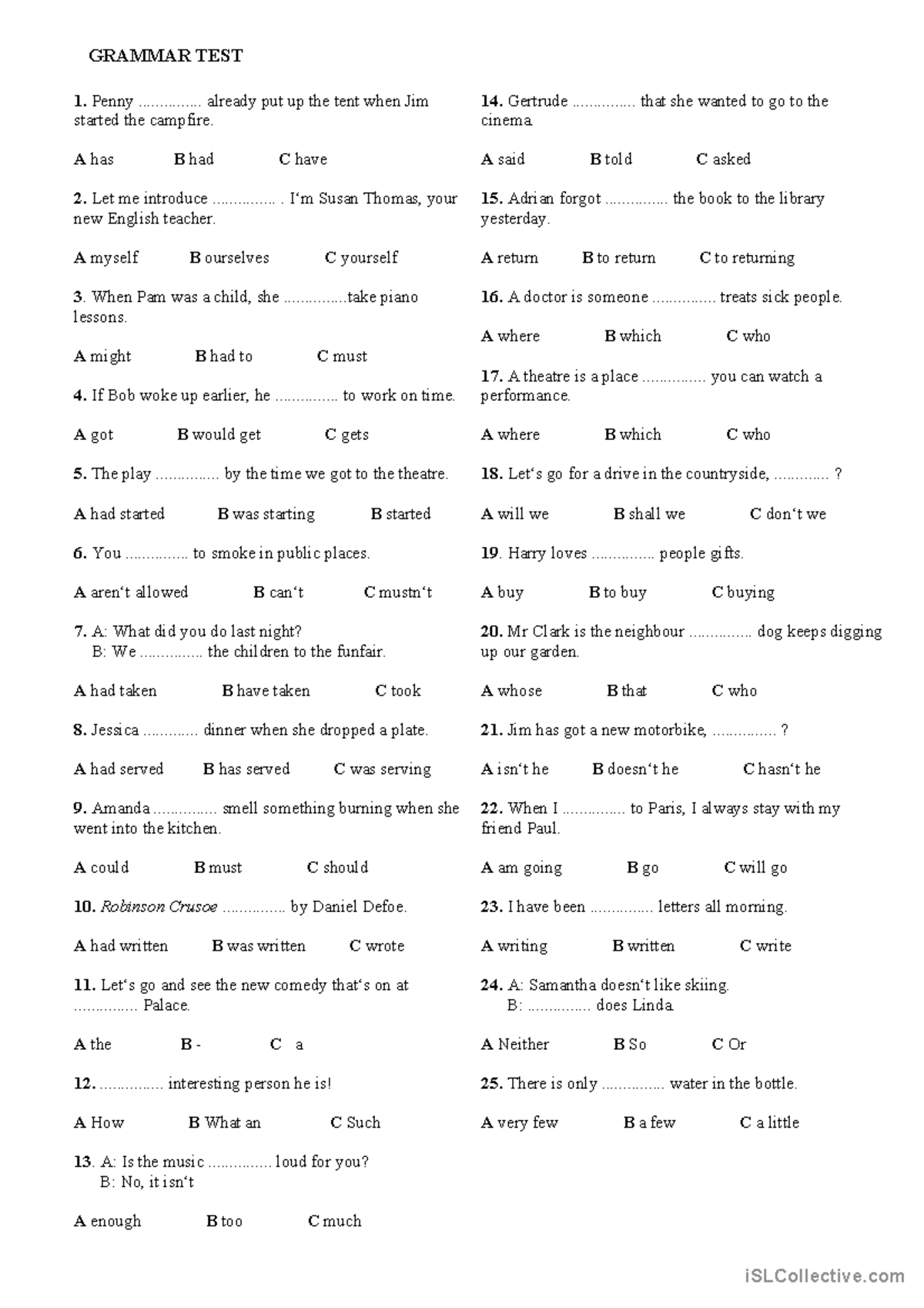 Grammar Test 1 - AVC: Practice Questions and Answers - Studocu