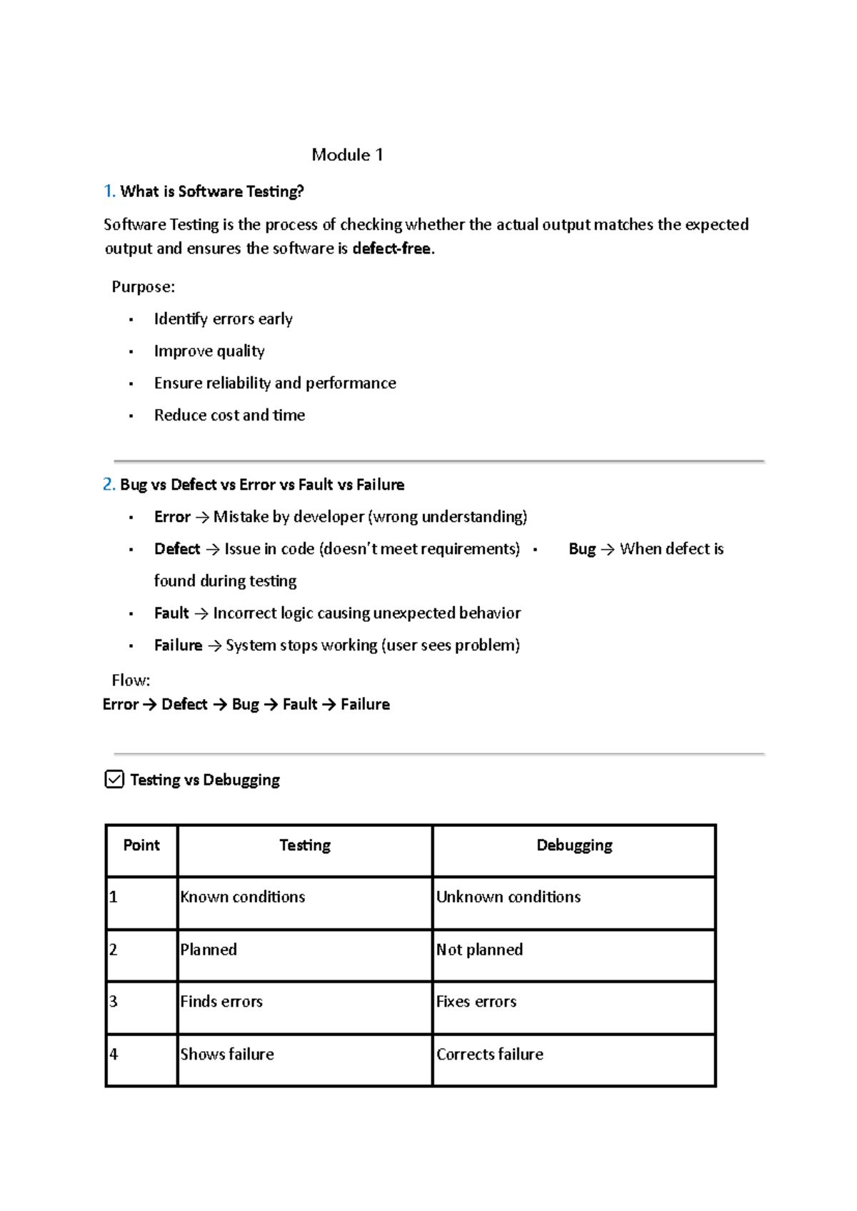 Software Testing Module 1: Understanding Concepts and Techniques - Studocu