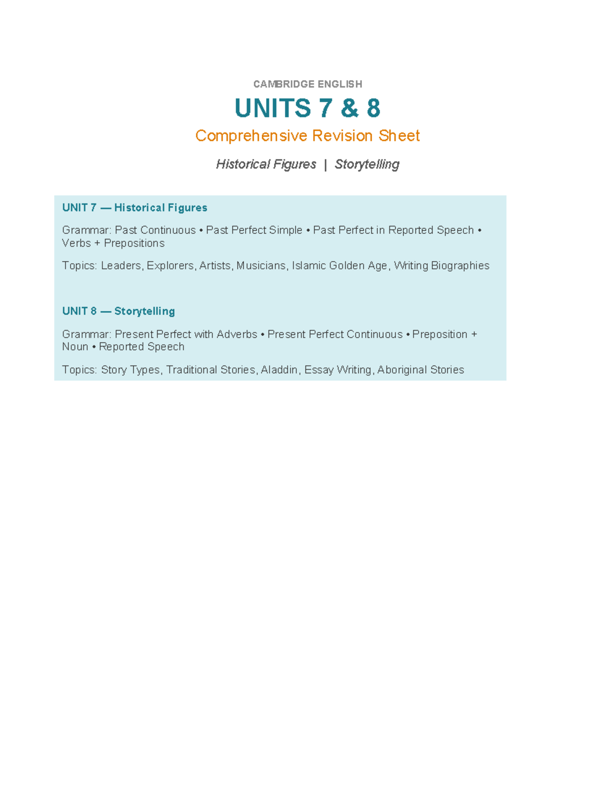 CAMBRIDGE ENGLISH UNITS 7-8 Comprehensive Revision Guide on Historical ...