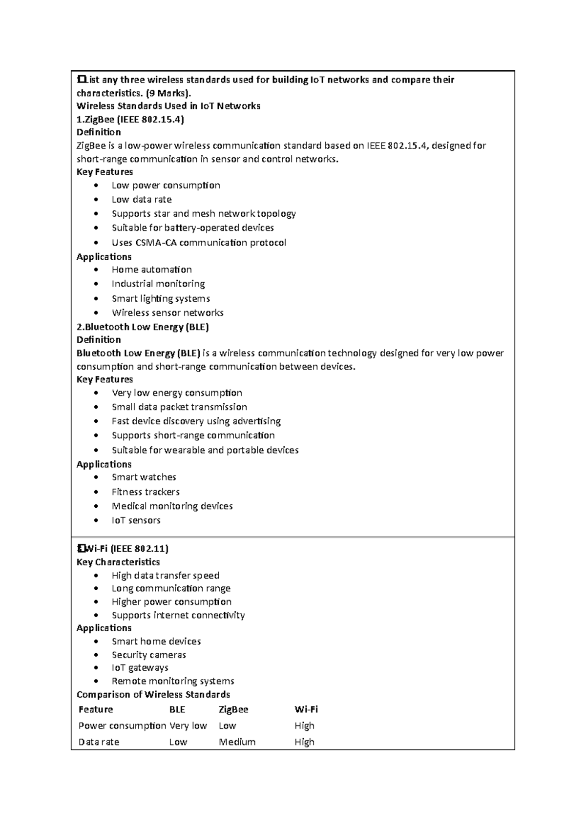 Mod 5 - Wireless Standards & Embedded Systems in IoT (9 Marks) - Studocu