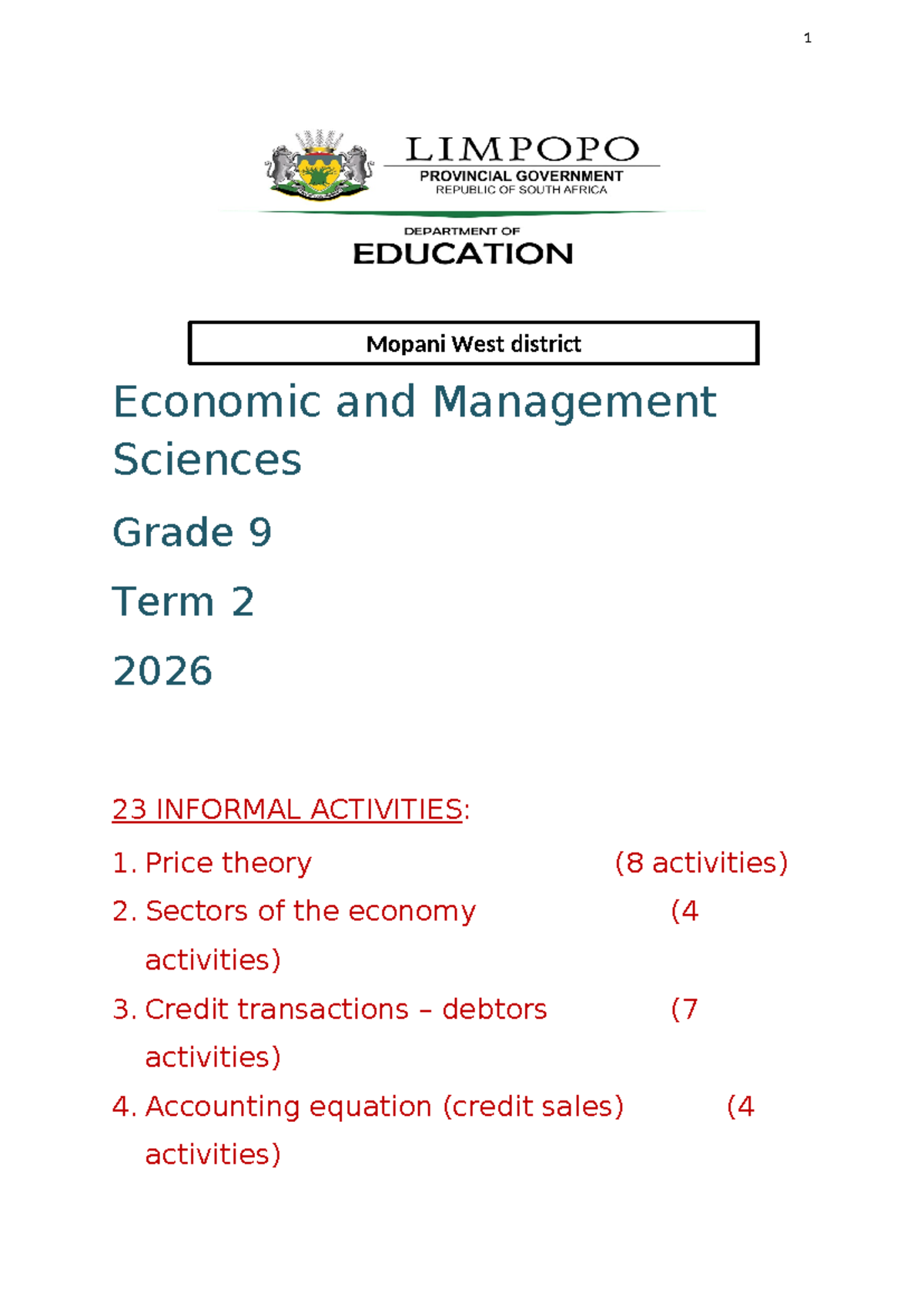 GR9 EMS Term 2 2026: Informal Activities on Price Theory & Economy ...