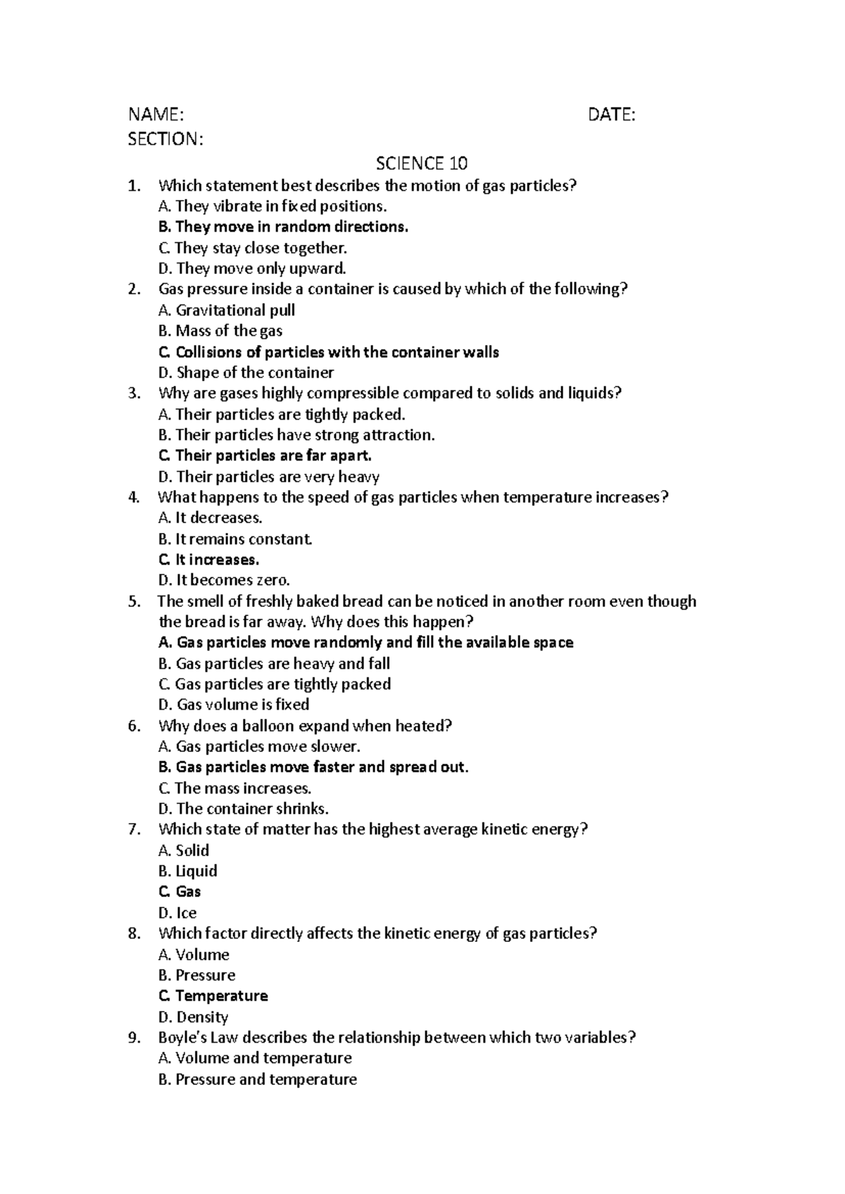 U4 GAS LAWS Chapter Test with Table of Specifications - Studocu