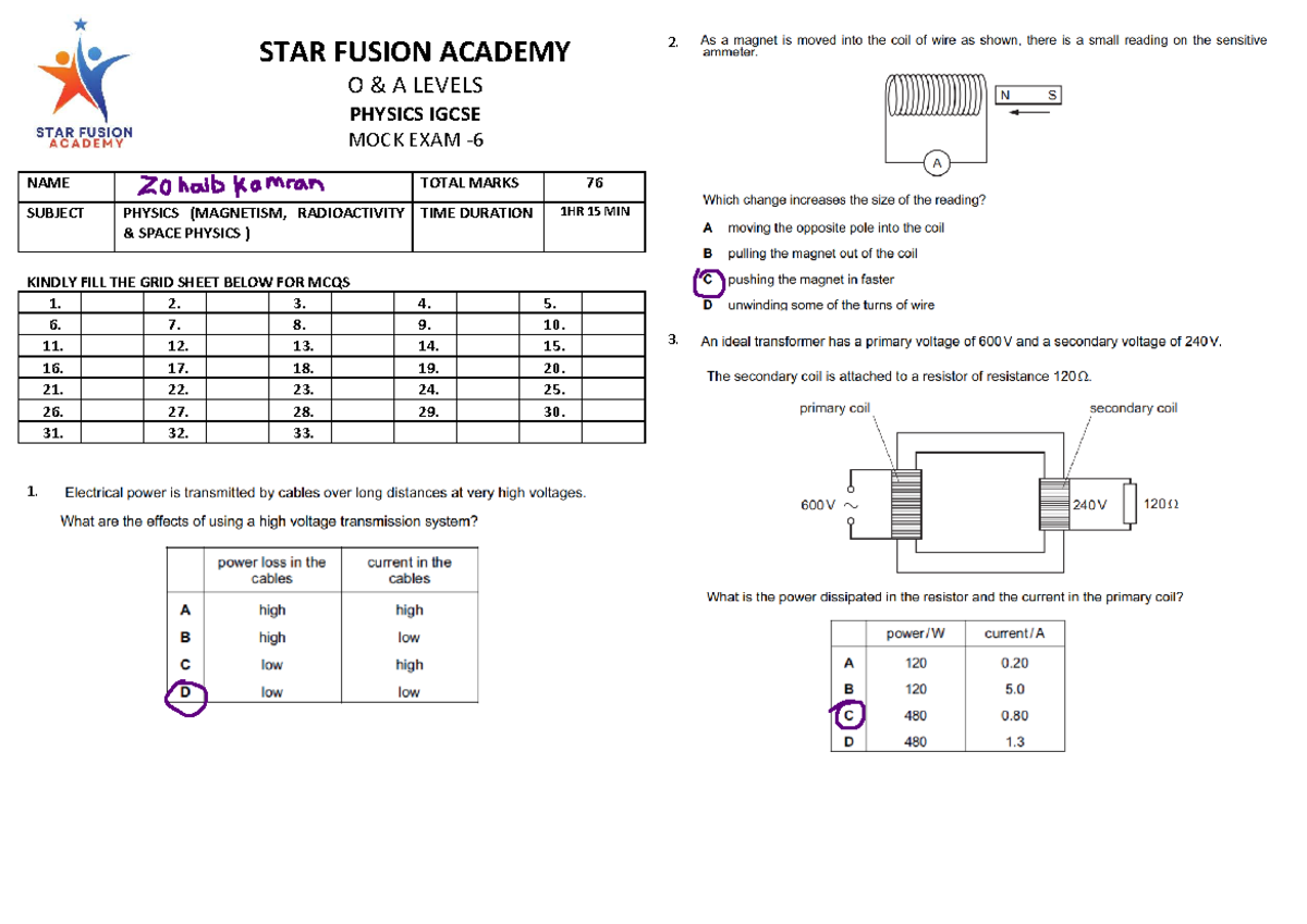 O & A LEVEL PHYSICS IGCSE Mock Exam 6: Magnetism & Radioactivity - Studocu