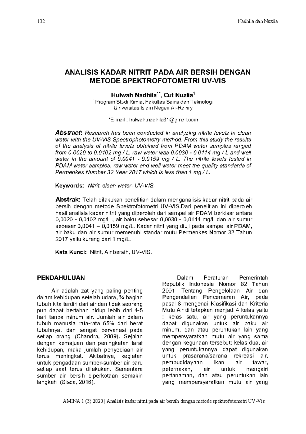 132 Kadar Nitrit pada Air Bersih: Analisis Spektrofotometri - Studocu