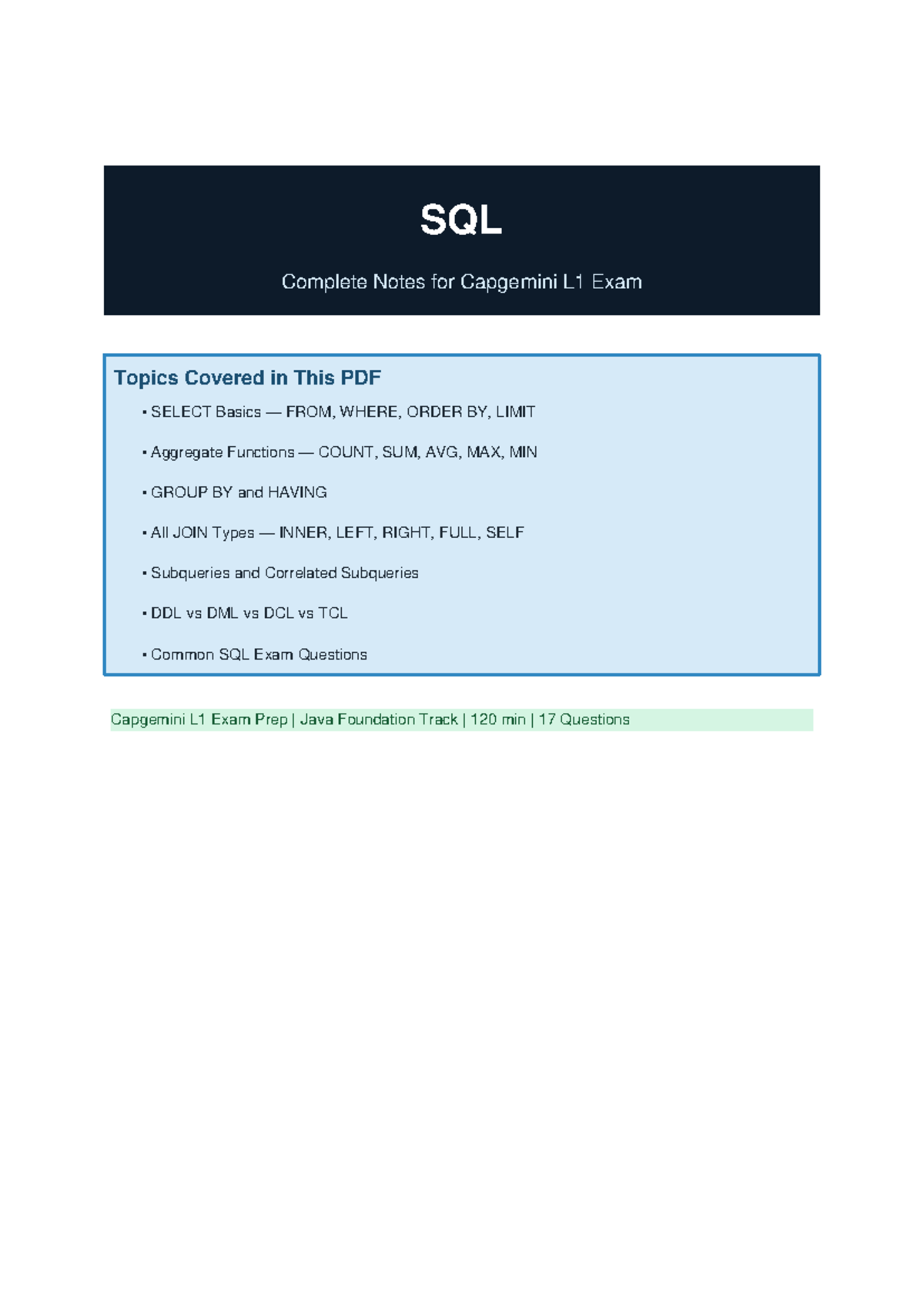 SQL Complete Notes for Capgemini L1 Exam: Key Topics & Concepts - Studocu