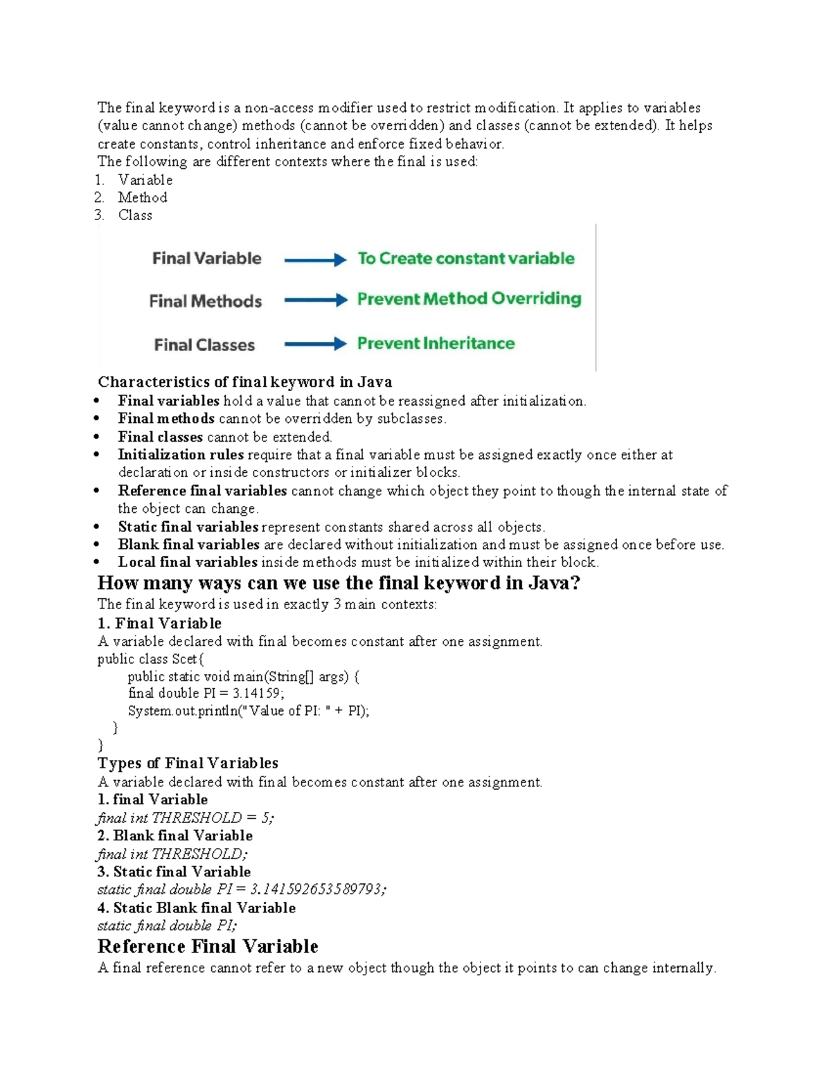 Java Final Keyword: Understanding Its Usage and Characteristics - Studocu