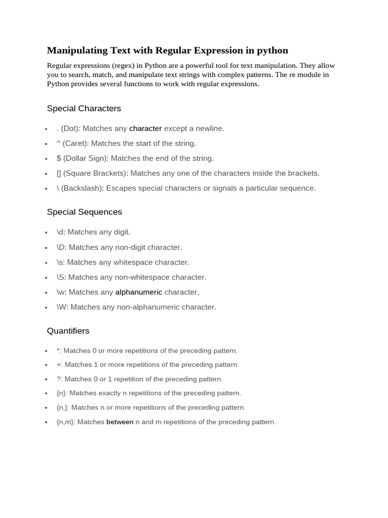 Manipulating Text With Regular Expression in Python | PDF | Regular ...