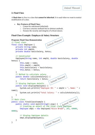 Final Class in Java - By JavaGoal | DOCX