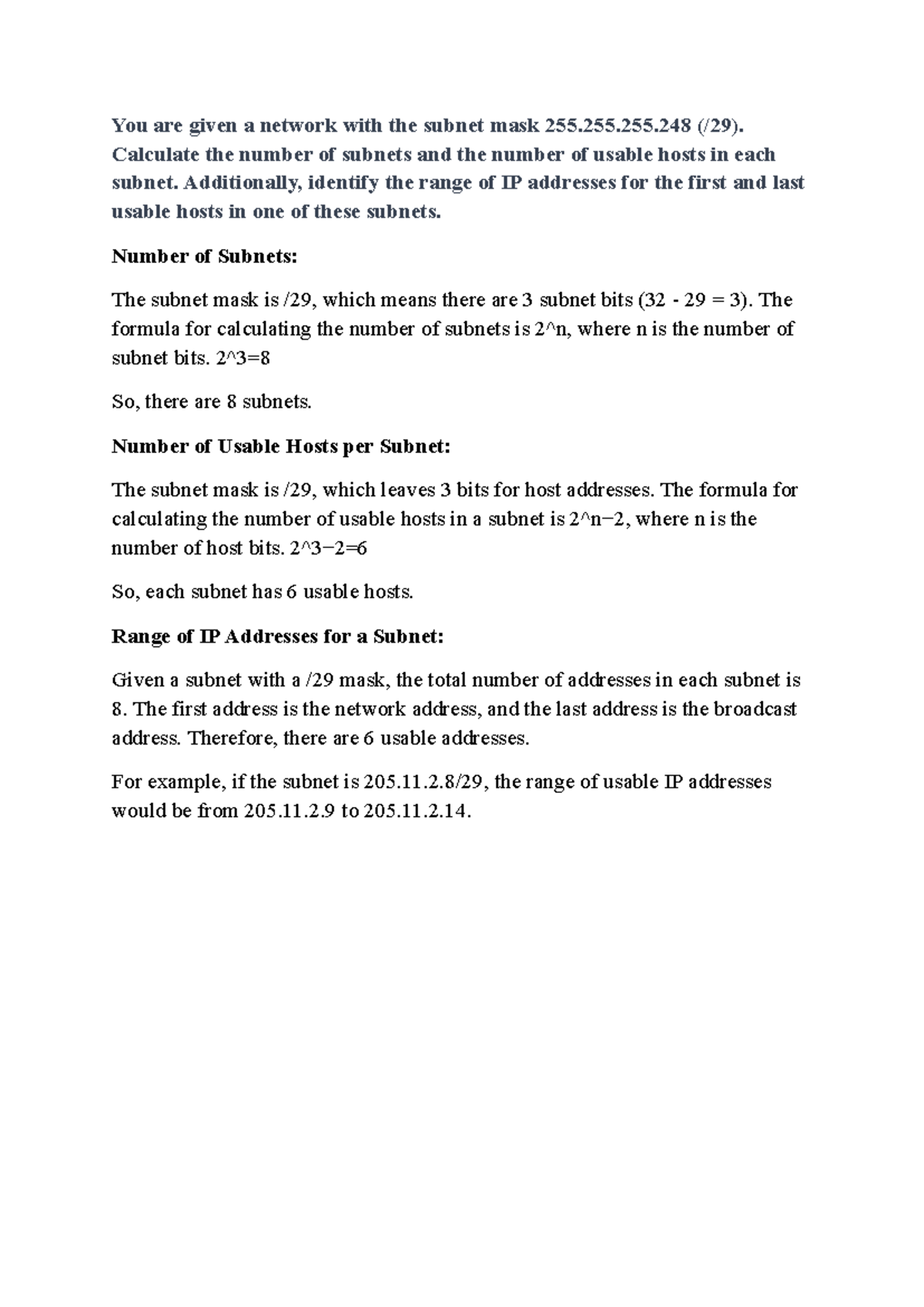 Subnetting Exercise - Hola - Question 1 Given a subnet mask of 255.255 ...