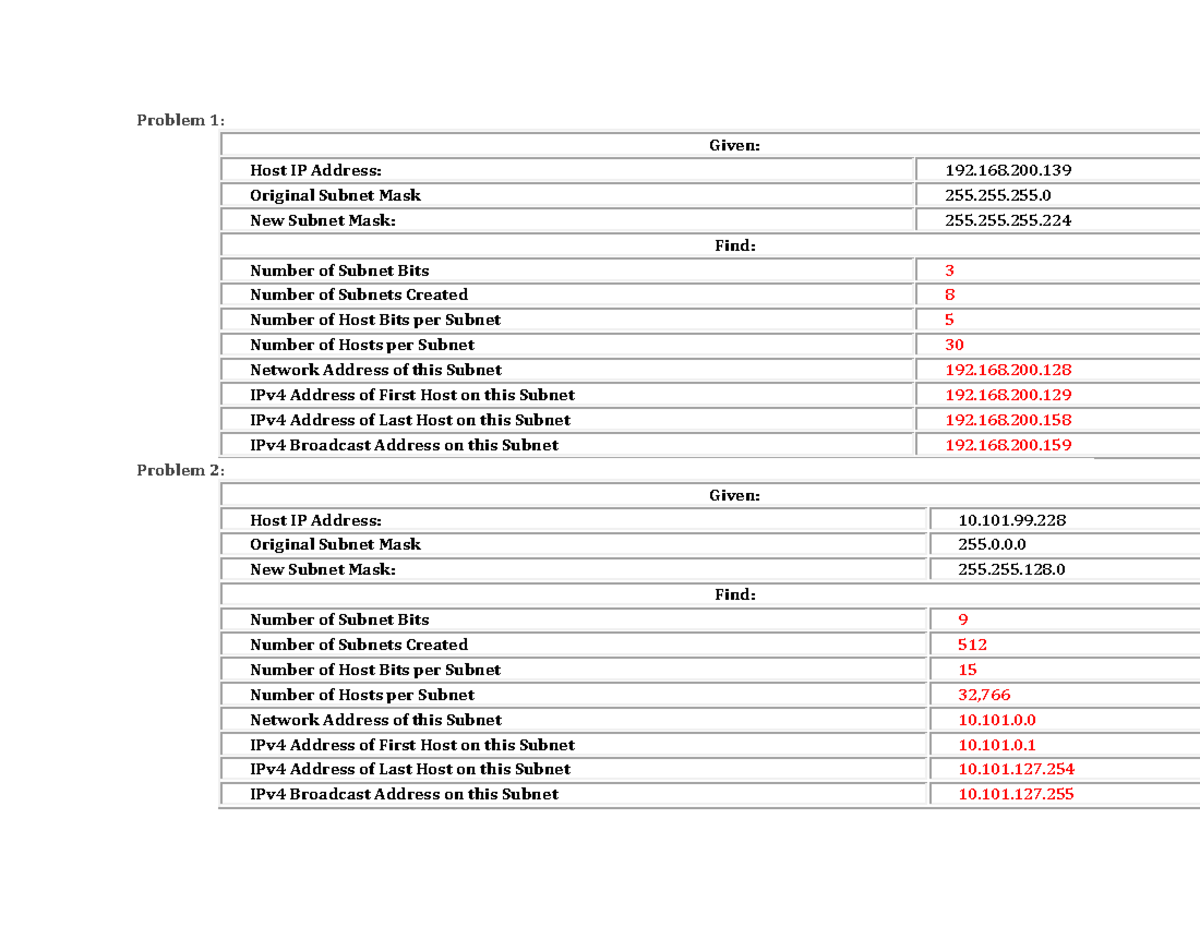 ipv4-subnets-solutions - Problem 1: Original Subnet Mask 255.255 ...