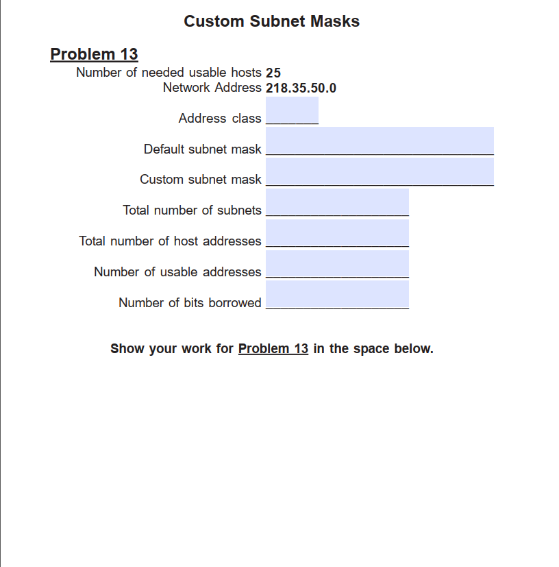 Solved Custom Subnet Masks Problem 5 Number of needed | Chegg.com