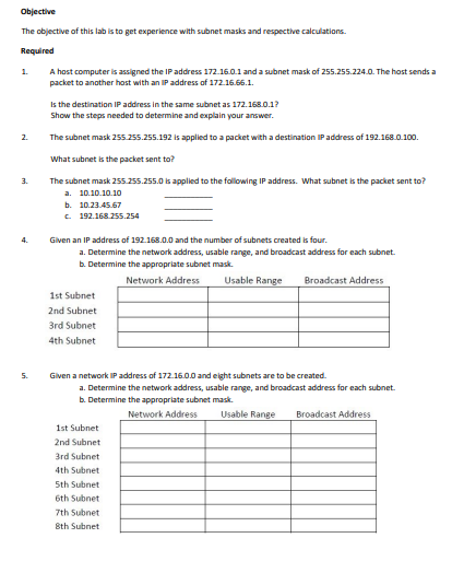 Solved To practice your skills using subnet masks, fill in | Chegg.com