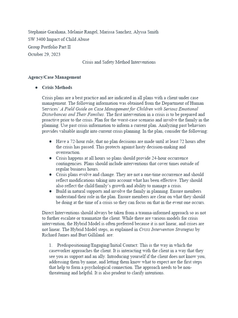 Portfolio Project 3 Crisis and Safety Methods | PDF | Psychotherapy ...