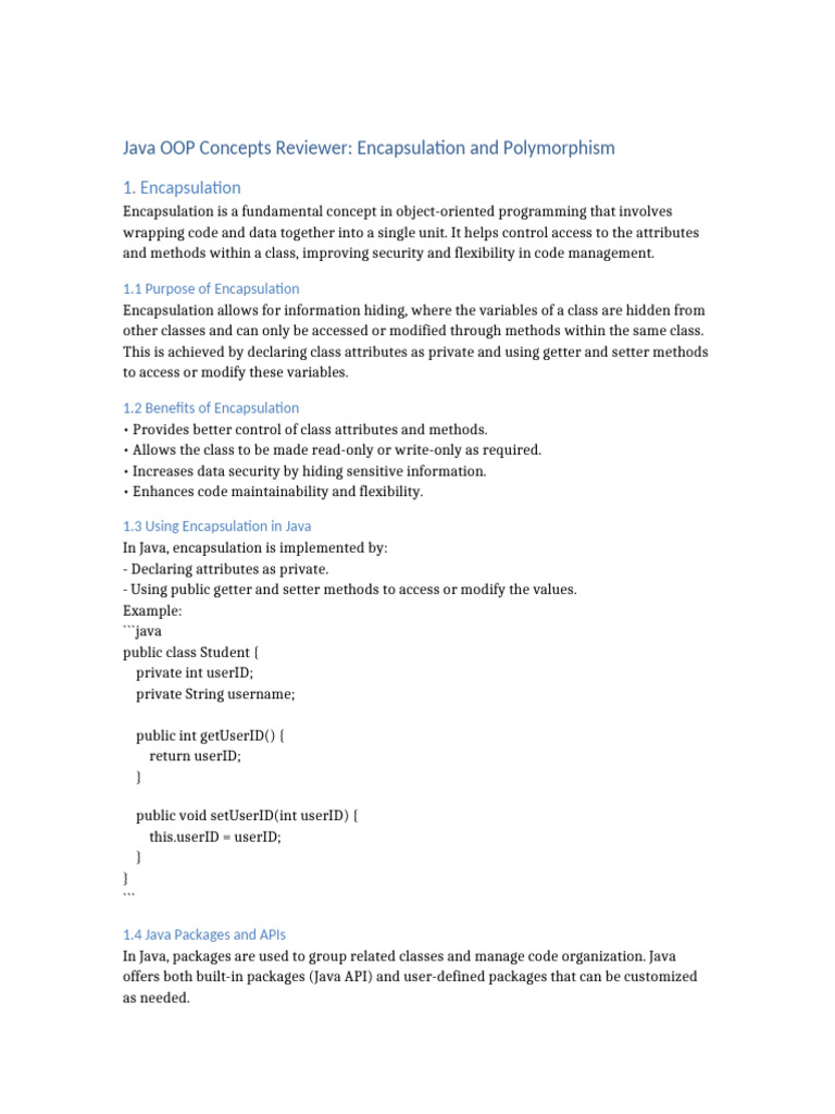 Java OOP: Encapsulation & Polymorphism Guide | PDF | Inheritance ...