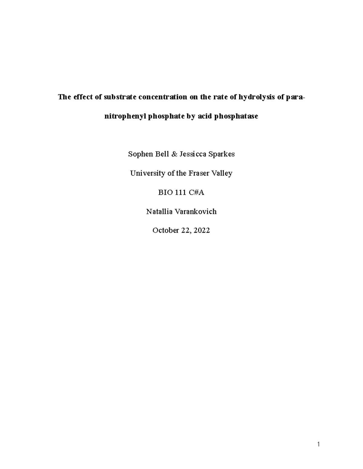 Enzyme Catalysis Lab Report: Effects of Substrate Concentration ...