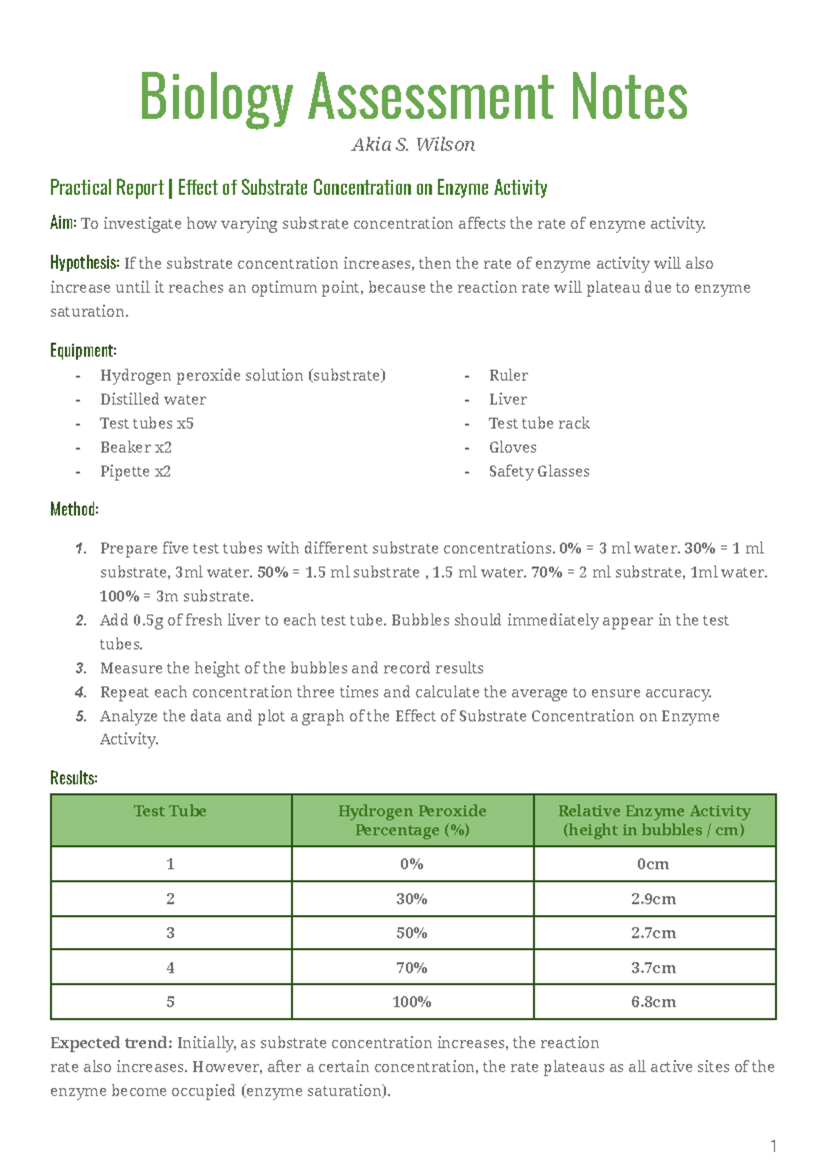 Lab Report: The Effect of Substrate Concentration on Enzyme Activity ...