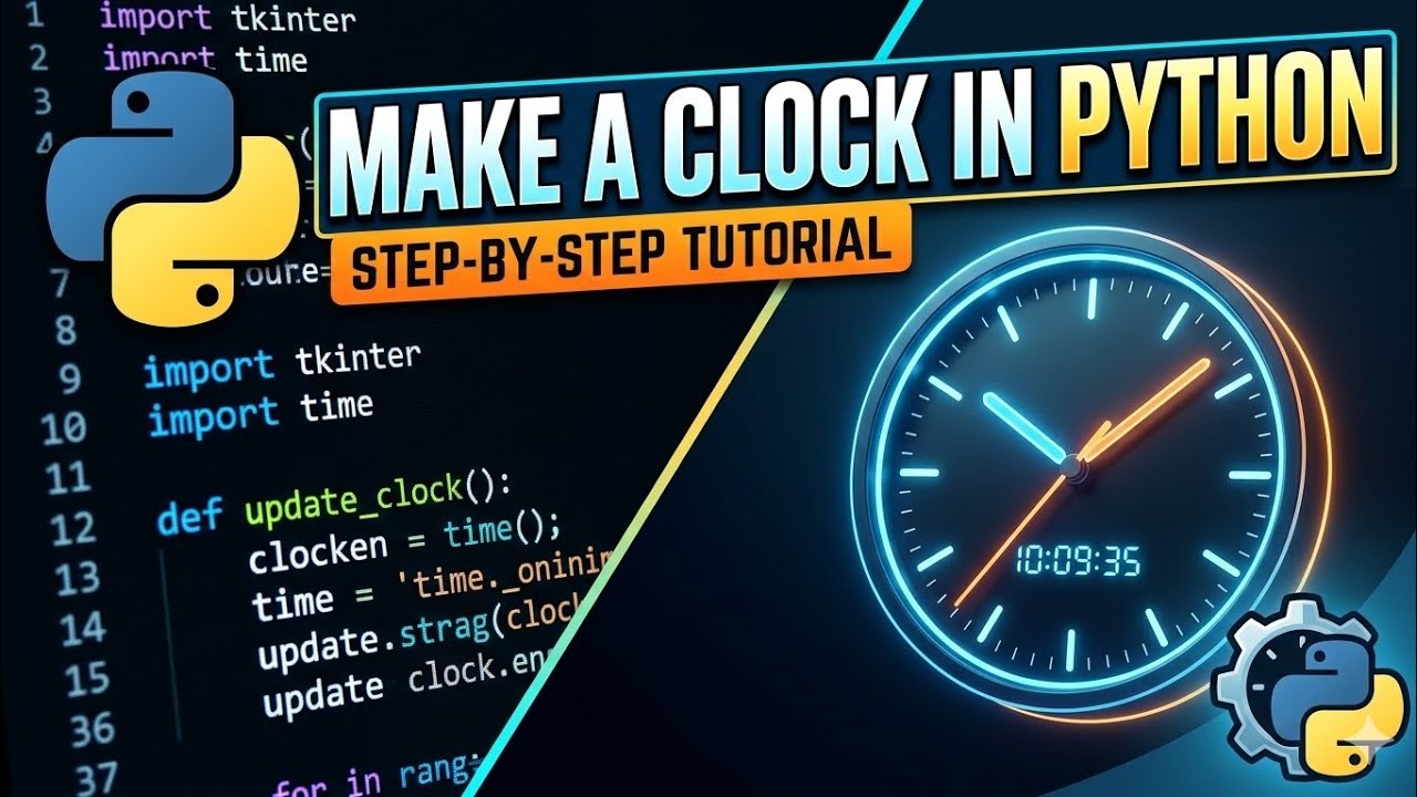 Based on this image's title: “Create a Simple Clock in Python | Python Coding Tutorial #python # ...”