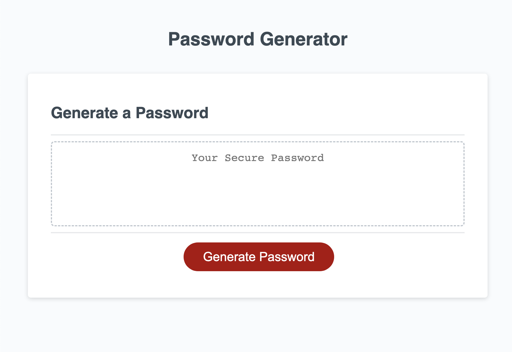 GitHub - rubybassi/cool-password-generator: Using Javascript, CSS and ...