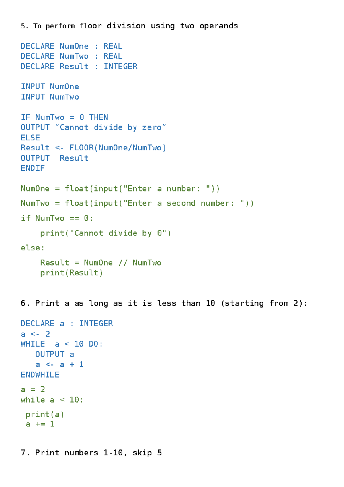 Python Programming Concepts: Floor Division, Loops, and Arrays - Studocu