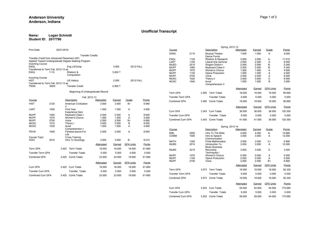 Unofficial Transcript Fall 2015 | PDF