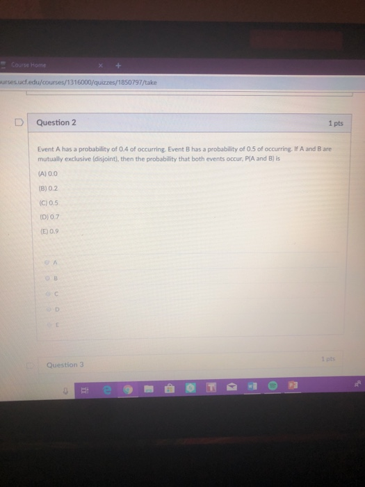 Solved urses.ucf.edu/courses/1316000/quizzes/1850797/take D | Chegg.com