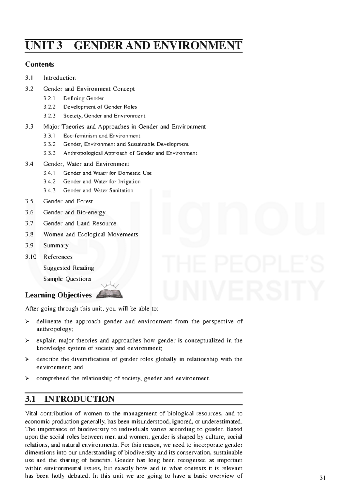 GENDER AND ENVIRONMENT: UNIT 3 OVERVIEW AND KEY CONCEPTS - Studocu