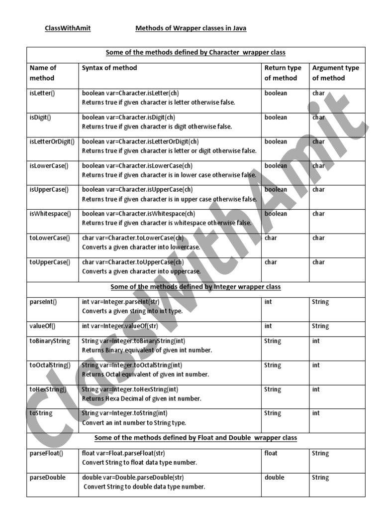 Methods of Java Wrapper Class | PDF | Teaching Methods & Materials