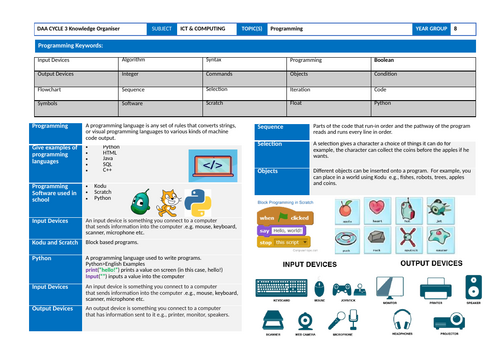 Introduction to Programming KS3 Computer Science Knowledge Organiser ...