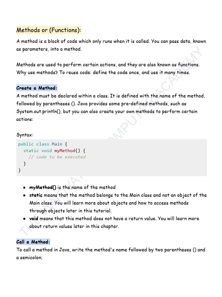 Java - Methods: Creating A Method | PDF | Method (Computer Programming ...