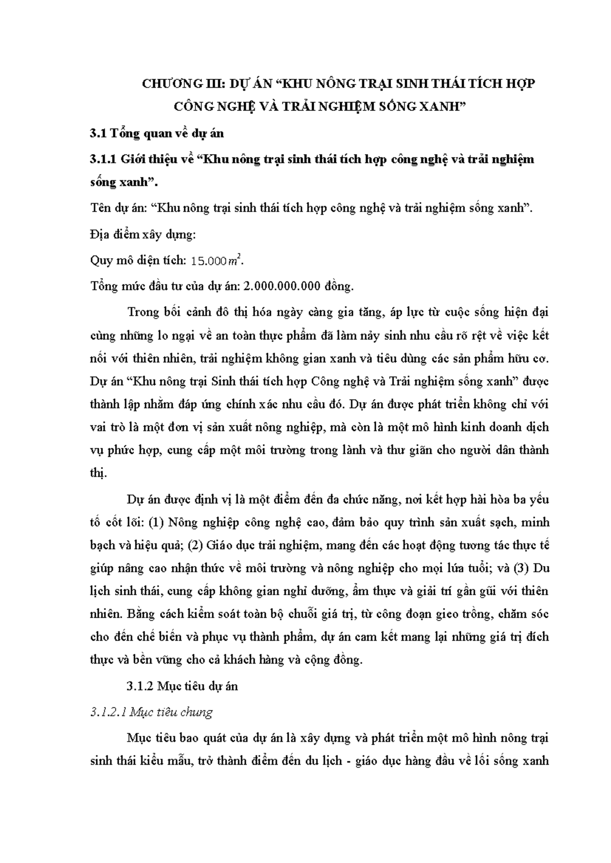 CHƯƠNG III - DỰ ÁN NÔNG TRẠI SINH THÁI TÍCH HỢP CÔNG NGHỆ - Studocu