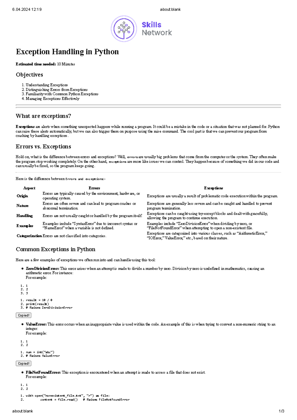 python error handling best practices Solution: module # 7 : error ...