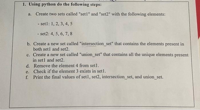 Solved Worksheet 3 Sets in Python 1. If my_set =set( 'bcd') | Chegg.com