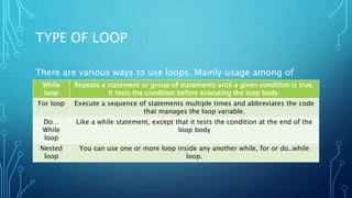 Iterative control structures, looping, types of loops, loop working | PPTX