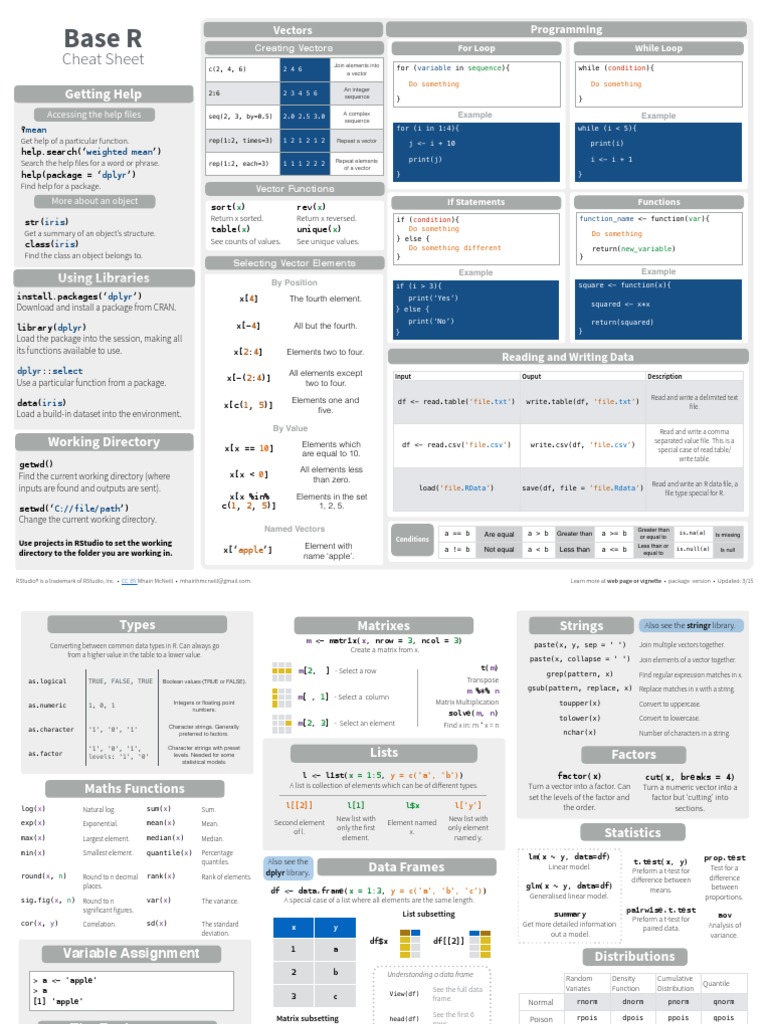 Base R Cheat Sheet by Todin (2 pages) #programming #r : r/Cheatography