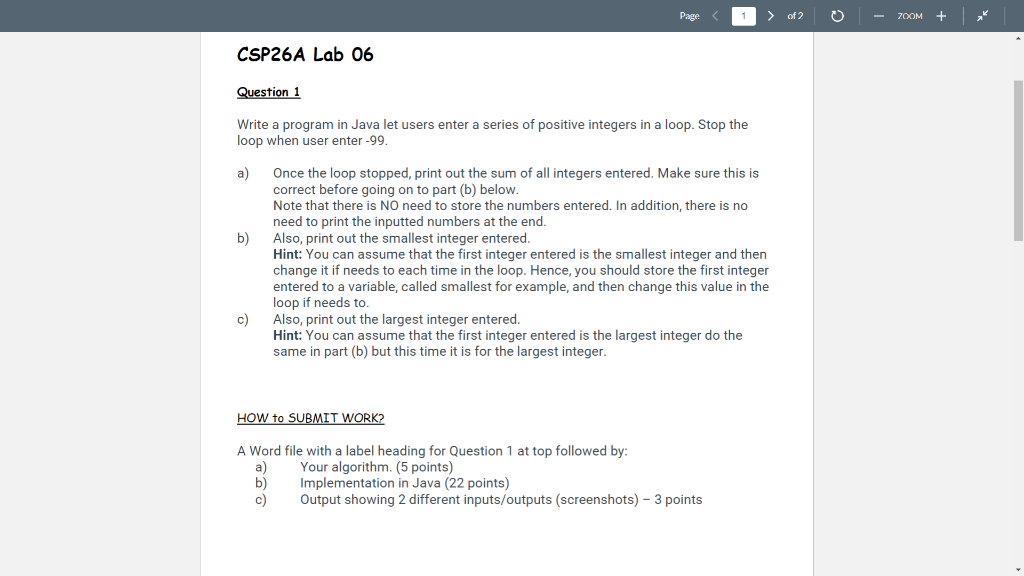 SOLVED: Part (1): Write a Java program to do the following: 1) Ask the ...