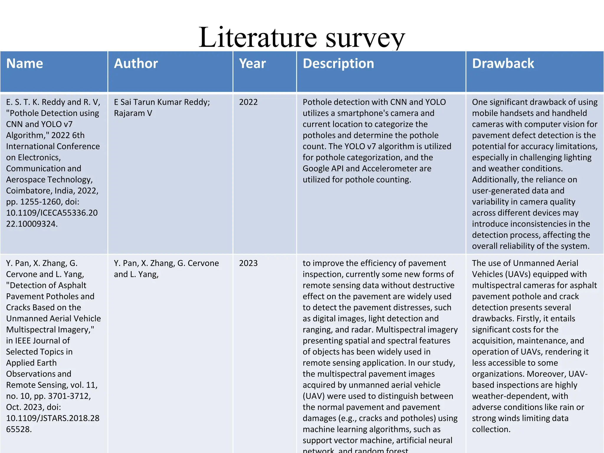 Table 4 from A Review of Vision-Based Pothole Detection Methods Using ...