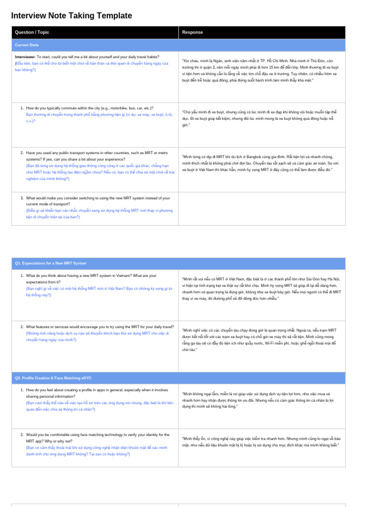 Interview Note Taking Template