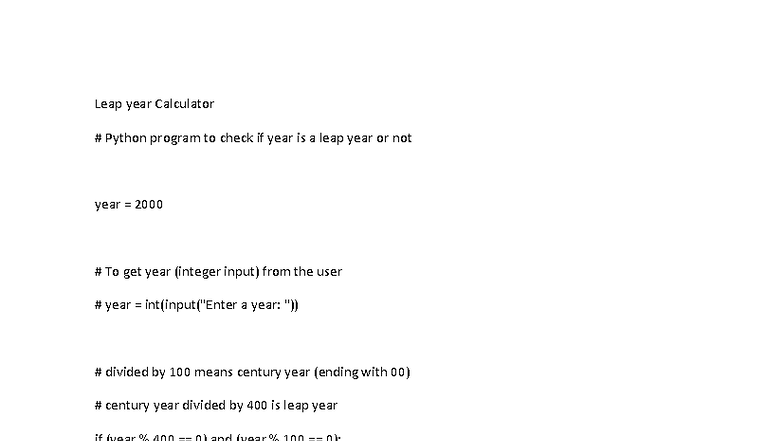 Leap Year Calculator - Python Program for Year Check - Studocu