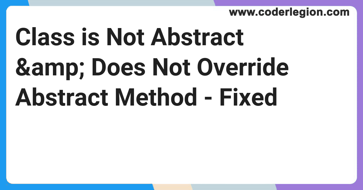 Class is Not Abstract & Does Not Override Abstract Method - Fixed ...
