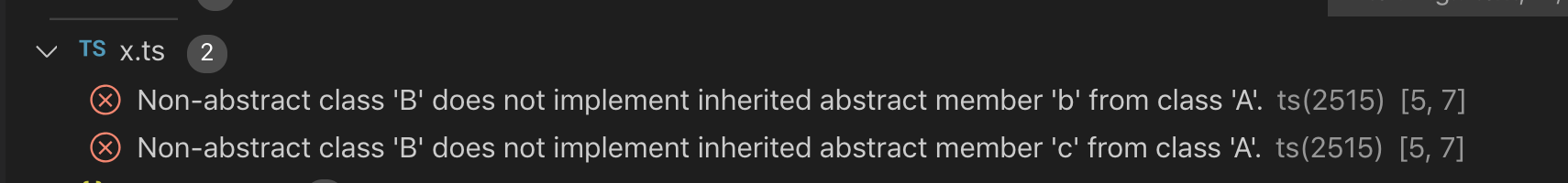 2 TS quick fixes that do the same thing to implement abstract class ...